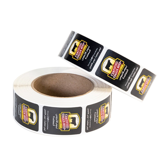 A roll of 1,000 Arabic labels featuring the Certified Angus Beef(R) brand logo and quality statement (1.5 in. X 2 in.).