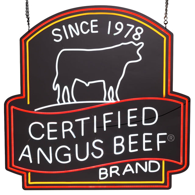 Make a statement with the Certified Angus Beef ® Acrylic LED Logo Sign. Designed to elevate your business or retail space, this sleek illuminated sign features a bold, glowing logo that attracts attention and reinforces your commitment to the best beef. Crafted from durable 6mm black semi-transparent acrylic and featuring soft neon LED lights, it offers a modern and professional touch. With easy installation and an on/off function, this sign is perfect for lobbies, retail counters or display areas. The vibrant LED lighting, paired with the Certified Angus Beef ® brand's iconic logo, creates a lasting impression while illuminating your space with style.